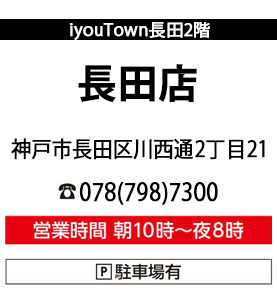 〒653-0834 神戸市長田区川西通2丁目21 iyouTown長田2階 Tel:078-798-7300
